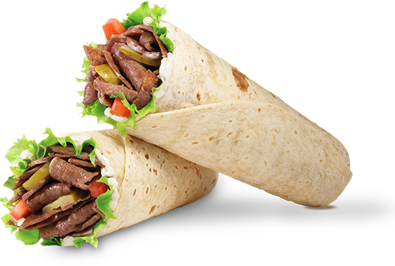 mit Drehspießfleisch, Salat und Käse